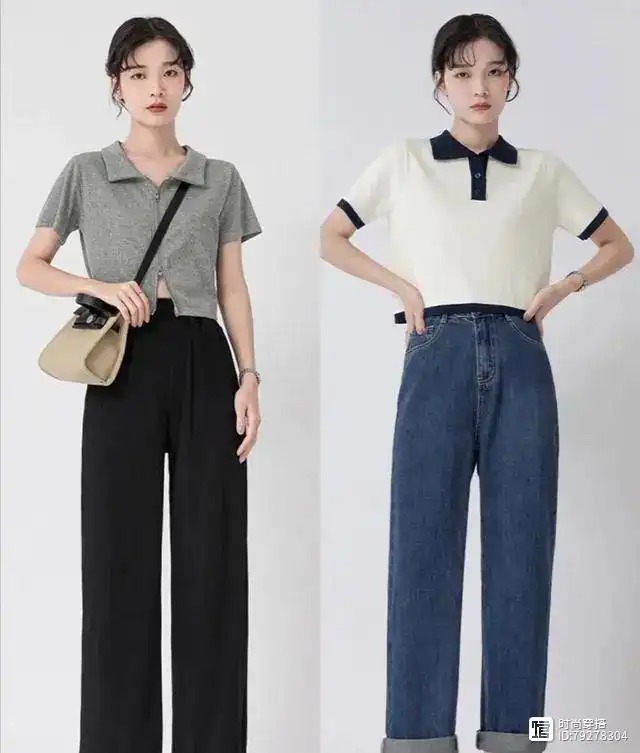 “短长搭配”指采用短款服装和长款服装,一般以短款上衣为主,这是为了使腰线的分割更加明显,从而呈现下半部分的延伸效果。在具体的服装选择上,不会有太高的要求,可以采用POLO夹克和牛仔裤的搭配,尤其是宽松的牛仔裤,对身材要求不高,也能带来休闲和青春的氛围。