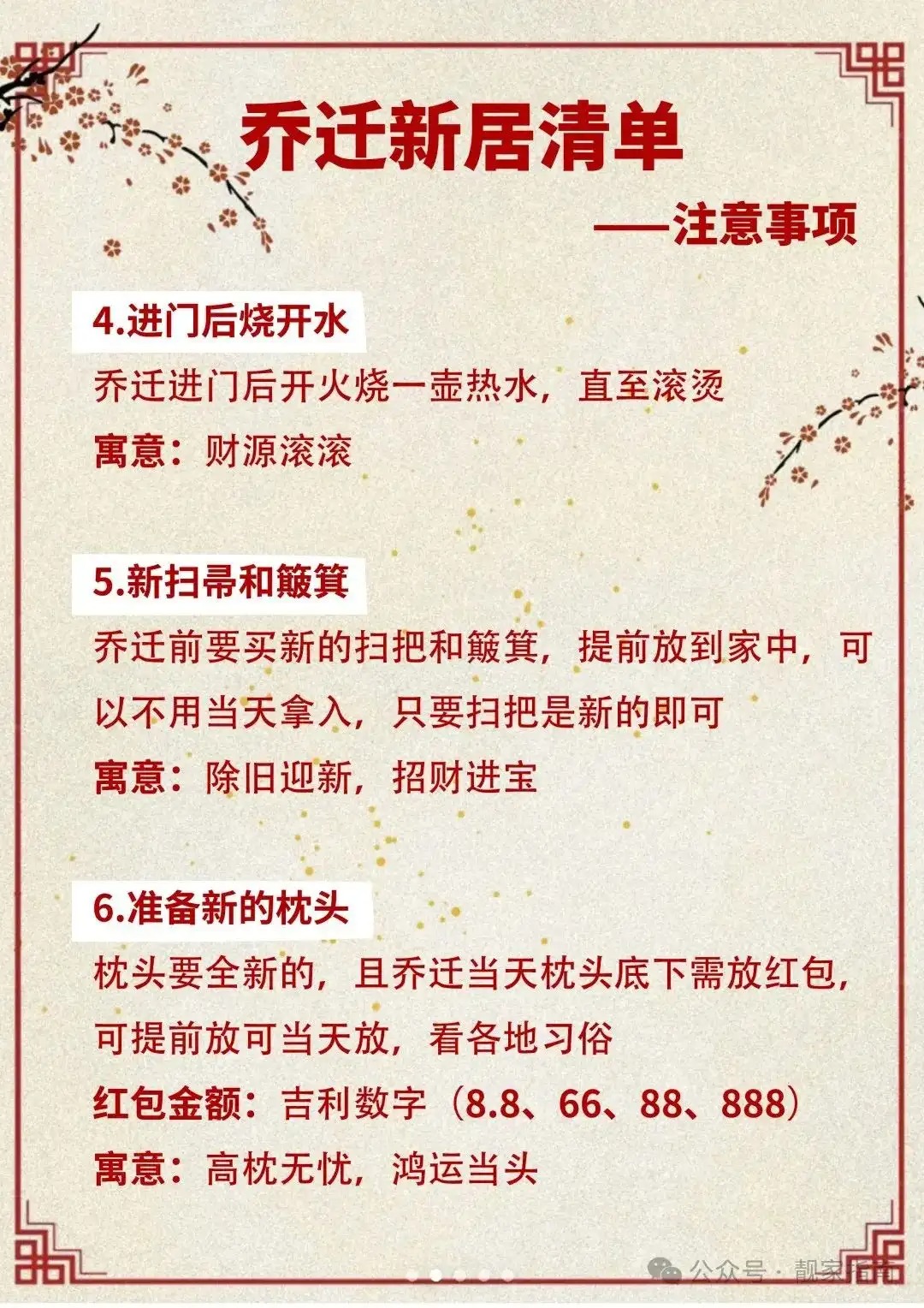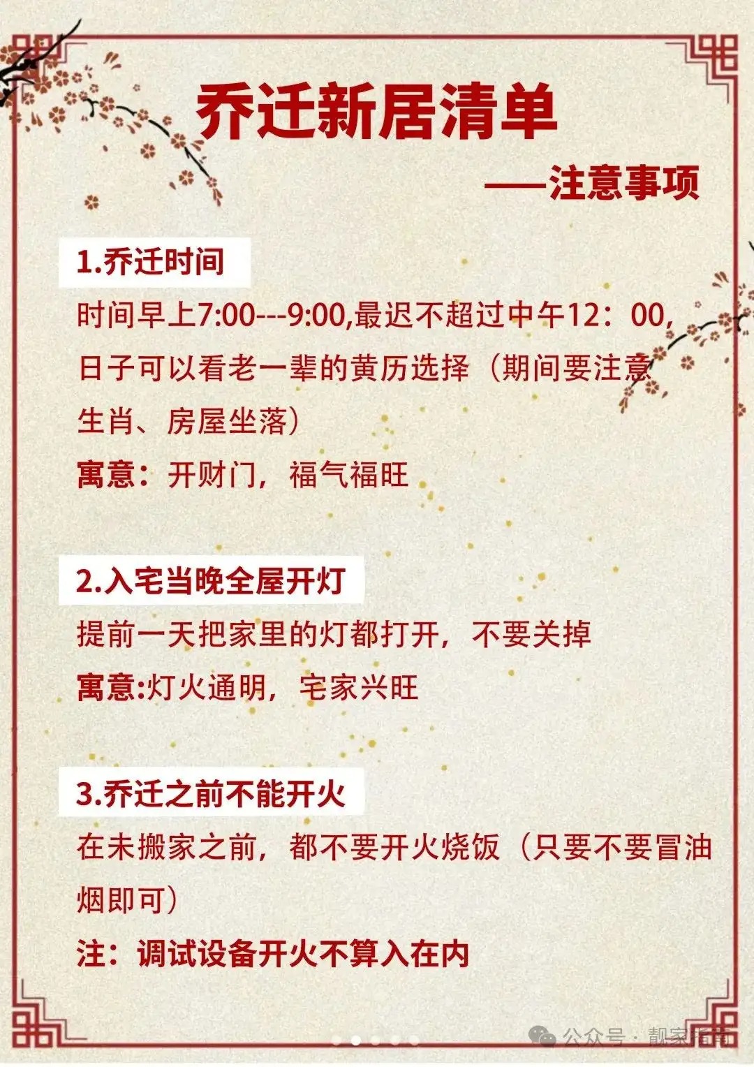 新房乔迁是一件大事,需要我们用心去准备和对待。遵循这些超全的注意事项和物品清单,让你的乔迁之旅更加顺利、愉快,开启幸福美满的新生活。祝愿大家在新居中生活得开心、舒适、安康!💕