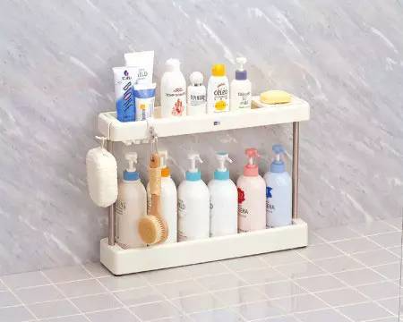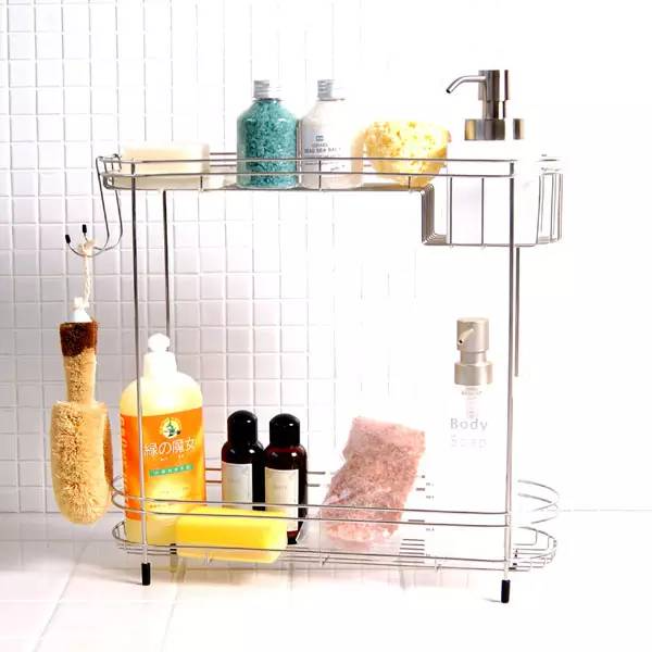 这是一款可以将浴室器具水分过滤的收纳小物。使用方法如图