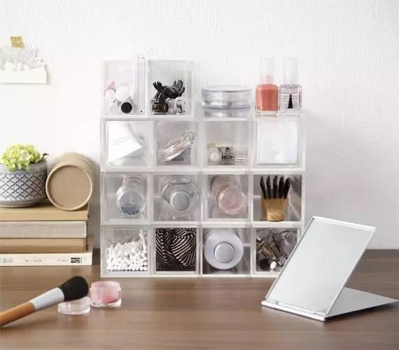 这种透明的抽屉式收纳最近也是人气飙升。point的是就是透明,在你睡眼朦胧的时候可以一眼发现自己想要找到的化妆品。