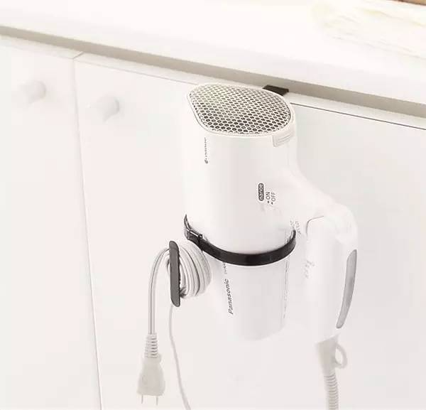 最后给大家介绍的自然是吹风机的收纳了。洗浴过后就需要吹干自己的秀发了,很多麻麻们纠结吹风机的摆放和吹风机那凌乱的电线。那么就给大家推荐一款吹风机的收纳神器。