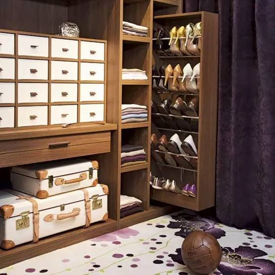 男士的一些西装革履不能起皱,所以建议使用一些特殊收纳家具进型收纳。