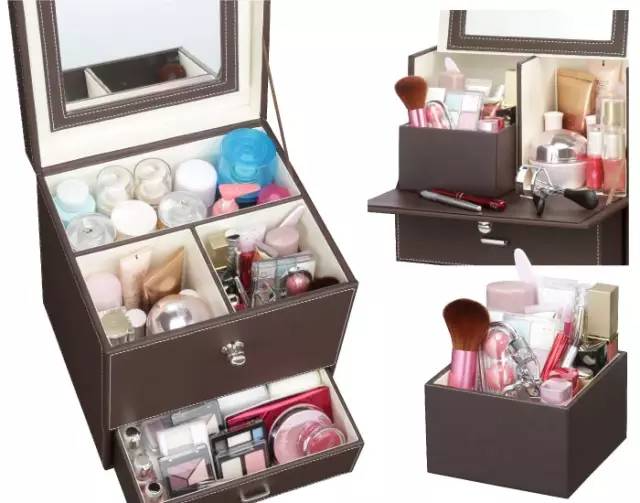 如果还是觉得在房间里摆放一个柜子比较占空间的话,没问题!那就去淘一个美美的化妆箱吧!轻量级化妆的MM的神器。
