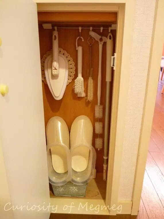 日本太太们都非常专业的把它们收纳在浴室的柜子里,记得准备一双专门打扫浴室的水鞋哦~