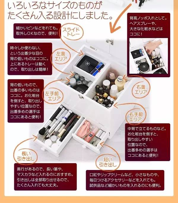 日本女人们的化妆技术可称世界一流,自然他们的化妆品更是玲琅满目数不胜数。怎么把他们收纳好也是比较纠结的。