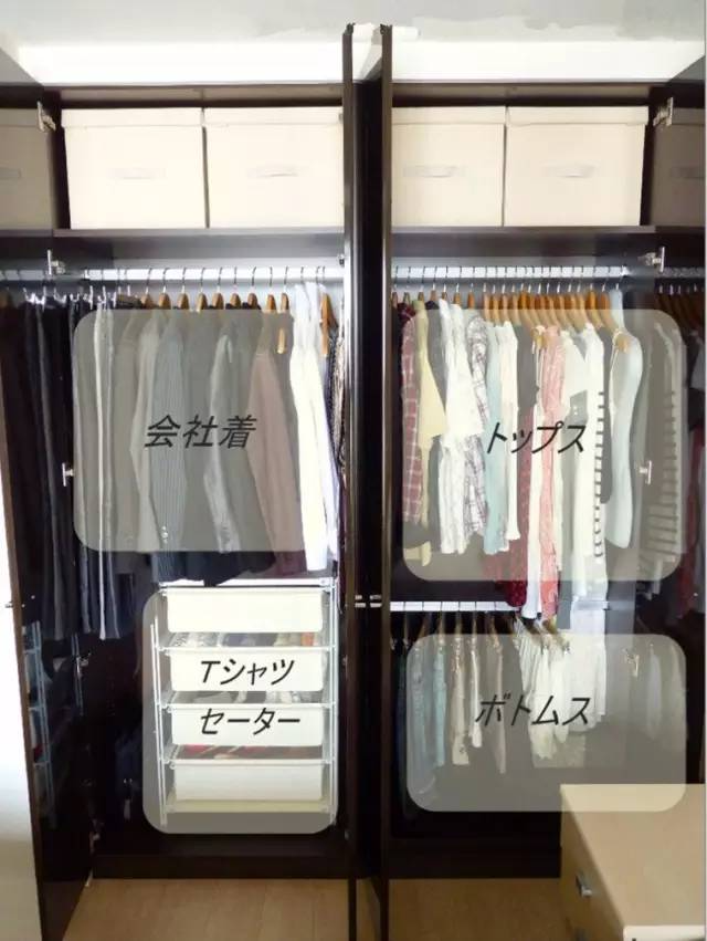 首先,衣柜是最麻烦也是使用频率最高的一个区域,一个不小心就会乱七八糟,导致最后连收拾的欲望都没有了。日本太太们的特点就是:分类!