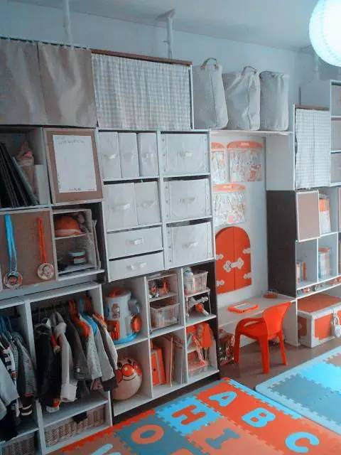 当然家庭条件不允许或者是小男孩的情况下,完全可以这样的方式收纳。一样的整洁。