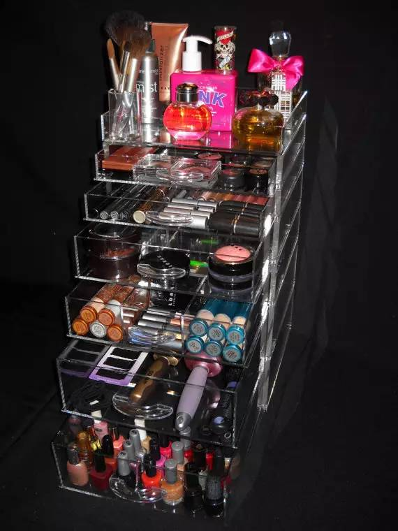 如果你的化妆品已经多的不行的情况下,可以去家居商店购一台化妆品收纳柜,这样你就不用每天花很多时间去找这个找那个了,所有的化妆品只要进行细心的分类,就可以一并收纳其中。大大的提高了制造美的效率。