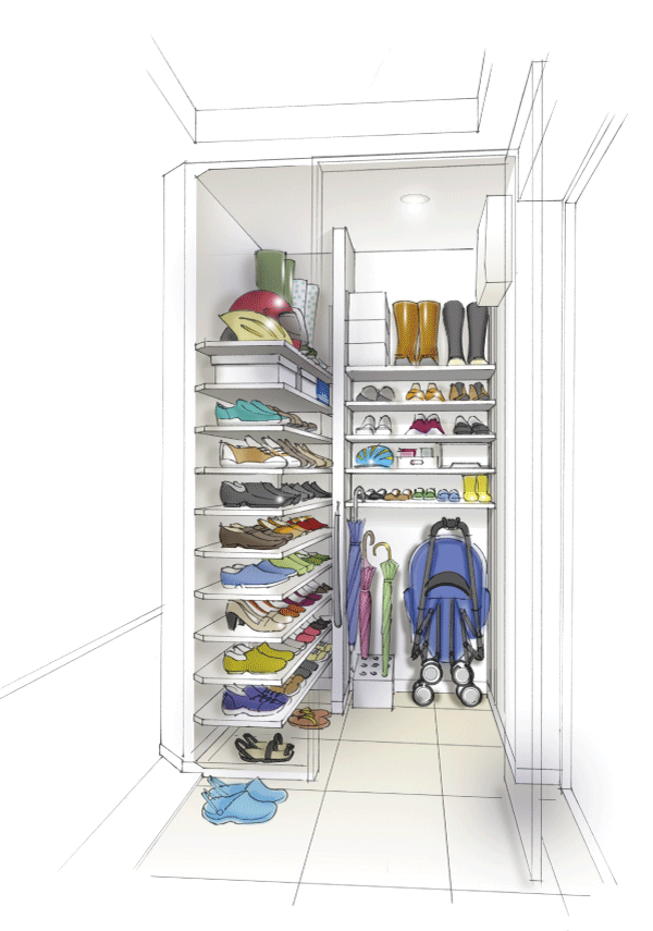 先来一组现实生活中日本家庭里鞋的收纳照片。