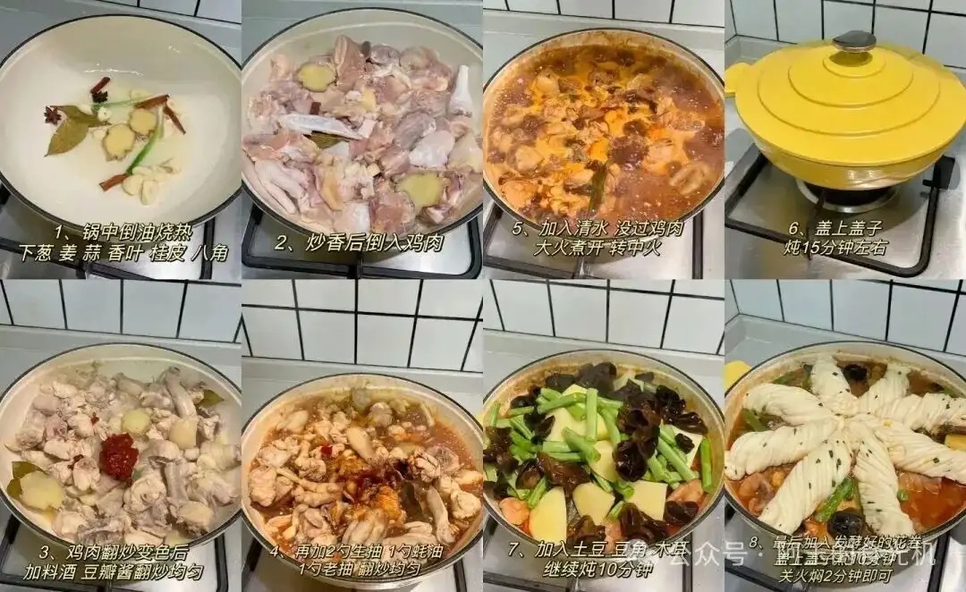 4️⃣鸡肉清洗干净切小块,油烧热,下葱姜蒜、八角、香叶、桂皮翻炒香