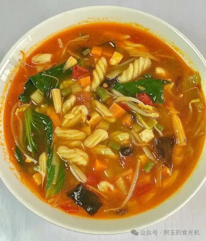 番茄、土豆、木耳、胡萝卜、丸子、豆腐、麻食