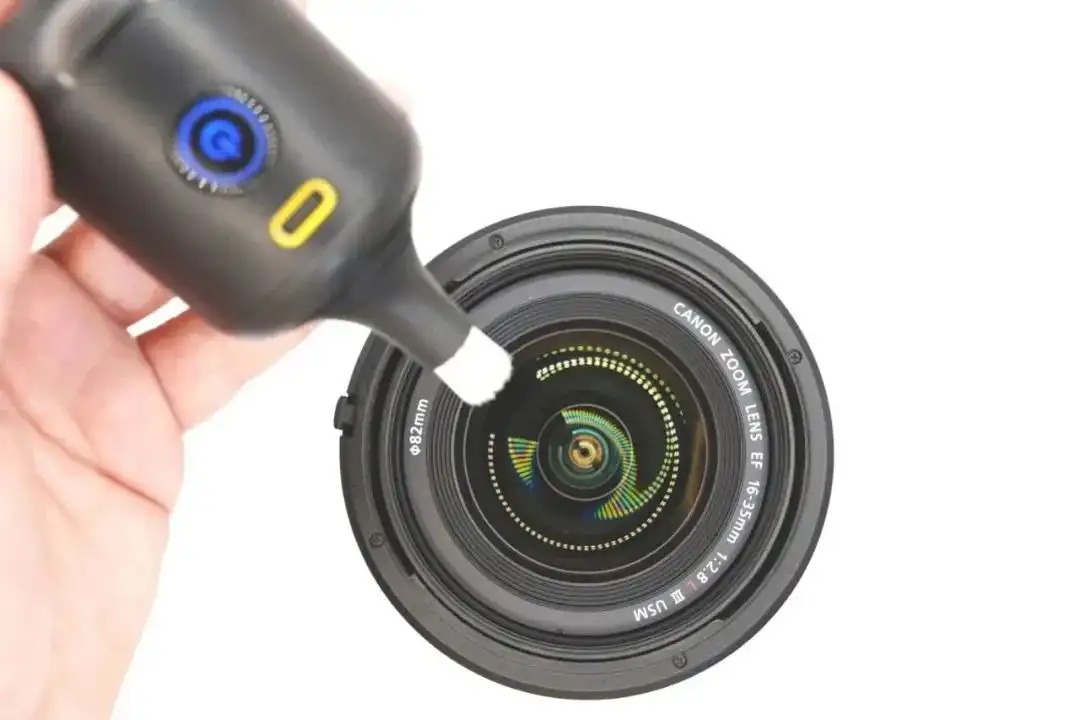 喜欢电动气吹的用户也可以看看这款,没错就是电动的,体积小,虽说小,但是风量是真的足够应付日常相机镜头、键盘、桌面的清洁,相比于传统的手动气吹,电动气吹更省力,也可以搭配更多的配件实用,以下是和手动气吹的对比图,它居然比小倒蛋还要小巧。