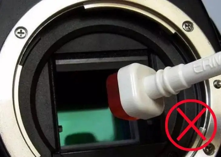 气吹和一些类似的工具在清理传感器灰尘上很快,在吹传感器时,将镜头口朝下。不然灰尘永远只是被吹到相机内,最终就会弄脏传感器。