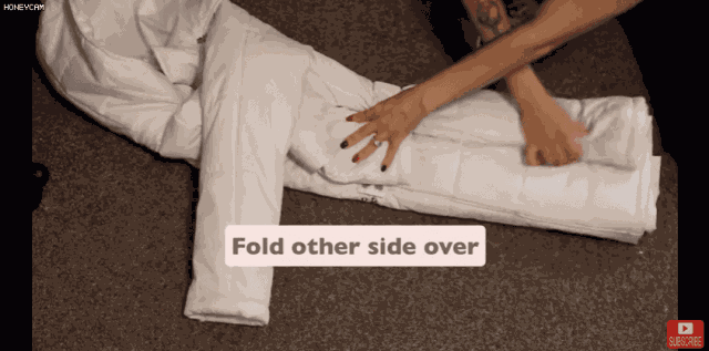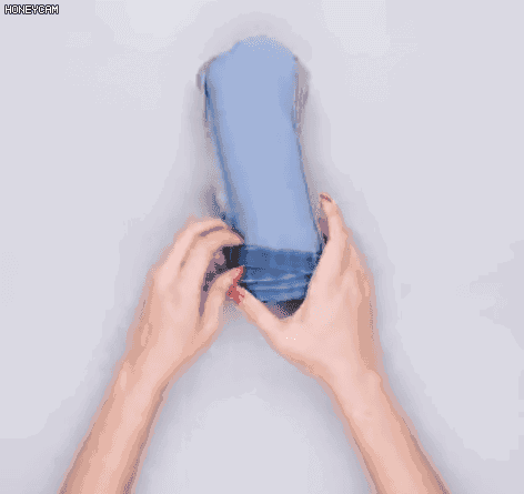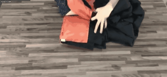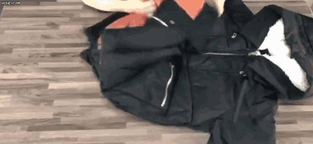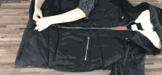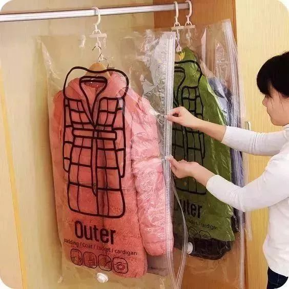 将卷完之后的羽绒服塞进衣物收纳袋里