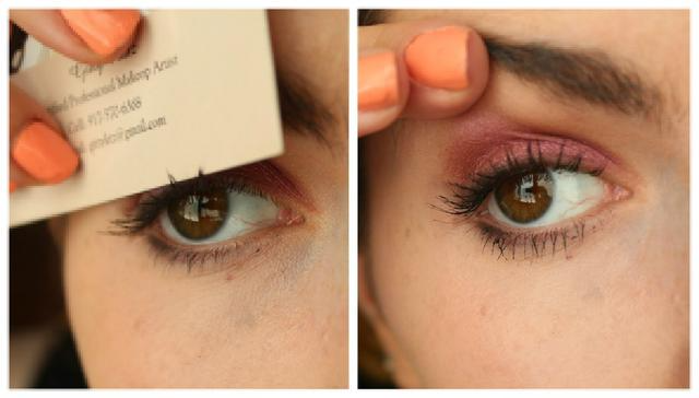 8.涂睫毛膏时可以放一张卡片在上方,以免涂在眼影上影响整个妆容。