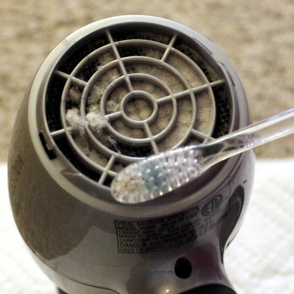 6.吹风机背后堵塞的毛絮可以用要牙刷进行清理。