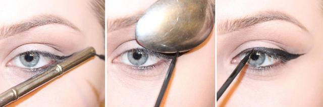 12.用勺子的弧度帮助你画出眼角飞扬的眼线。