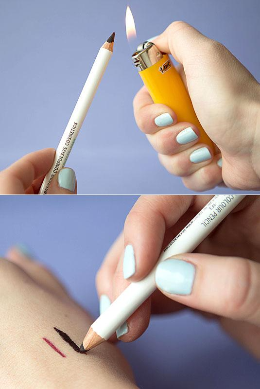 1.将眼线笔放在火上烤一下就可以变成眼线胶笔了,想要更加浓重持久的眼线时就可以这样做。