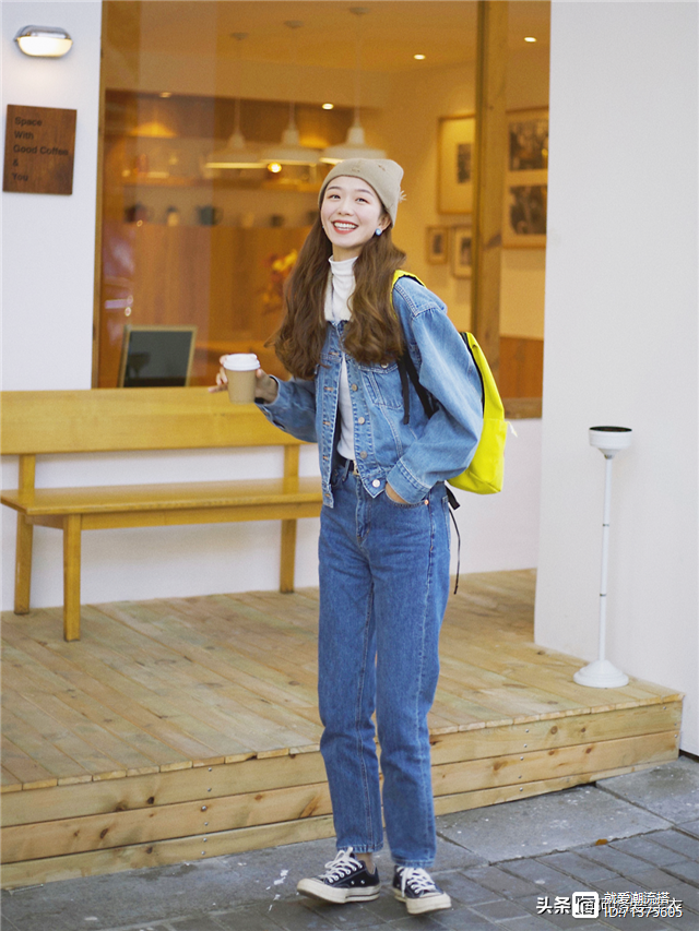 1、牛仔外套+牛仔裤