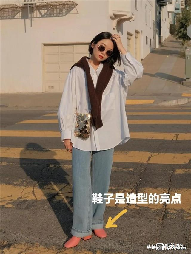 鞋子也是下装的一部分,鞋子的款式要和你的裤子呼应起来,同时也要适度地提升亮点。比如我们选择阔腿裤的时候就要避免厚底鞋,轻薄简单的鞋子才是首选,不然只会显得下半身很厚重,比如奶奶鞋和平底鞋都是不错的,简约还随性。