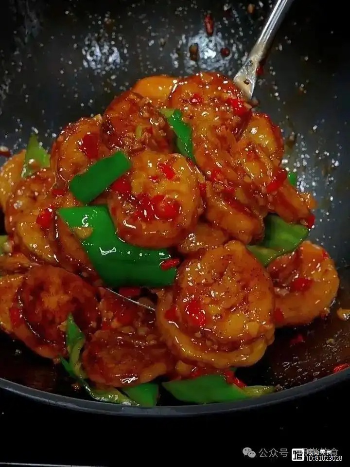 4. 待汤汁浓稠且茄子入味后,加入青椒片配色并再次翻炒均匀即可出锅装盘。