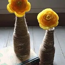 利用玻璃饮料瓶、酒瓶变废为宝制作出绳缠花瓶