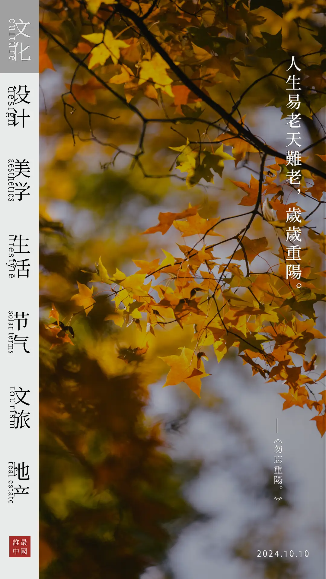 勿忘重阳,即是不忘「九九归一」的古典哲学思想;勿忘重阳,即是不忘祖宗和根本;勿忘重阳,即是不忘中国人与土地、自然几千年的情感和羁绊。