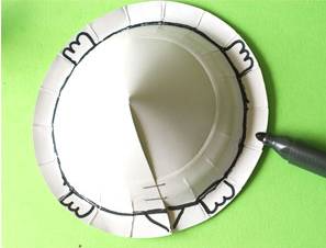 用黑色碳素笔绕一周画好圆,做小乌龟的身体部分。