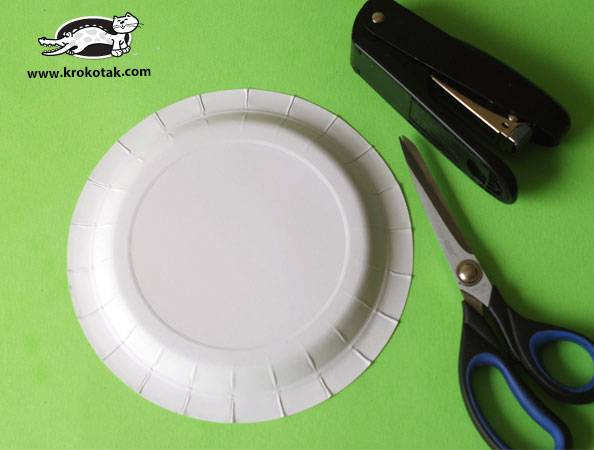 1、从1张深绿色硬板纸上剪下两个一大一小的圆形,以及类似乌龟头部的形状(如图),剩余部分剪成4个叶子形状之后作为四肢。