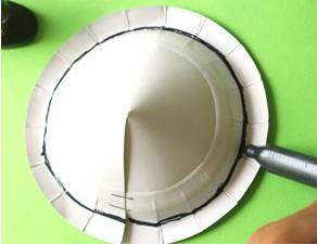 将可乐瓶底部用剪刀剪下;把可乐瓶倒扣在EVA片上,用笔延可乐瓶边缘画出乌龟的形状。