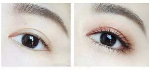 第四步:接着用深棕色眼线膏画内眼线并贴近睫毛根部,画一条细细的上眼线。眼尾延长2mm左右即可,画的钝一点会更自然。最后刷上睫毛膏,或贴上睫毛,就完成啦。