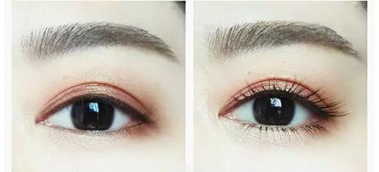 对比图,这款网红眼妆非常适合秋季,红棕色调,显得眼睛深邃又吸引人。