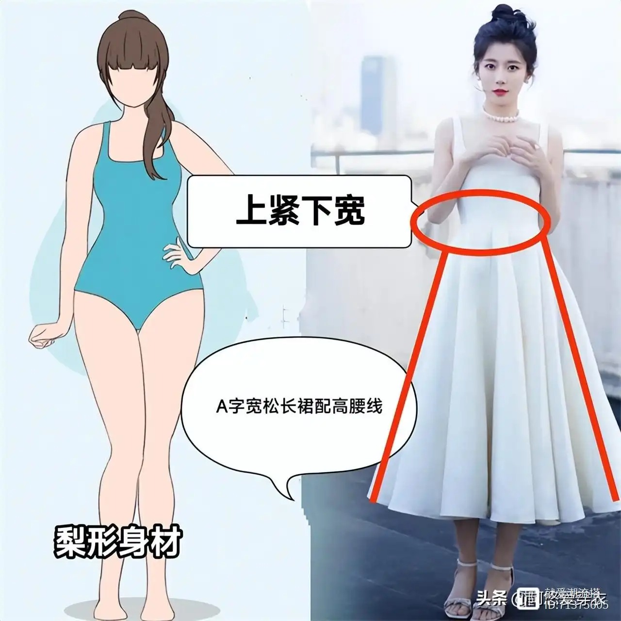 梨形身材最适合穿露腰短上衣,凸显纤细的腰部。长款a4裙,伞裙,百褶裙,宽松阔腿裤等超遮肉的下装也得安排起来。