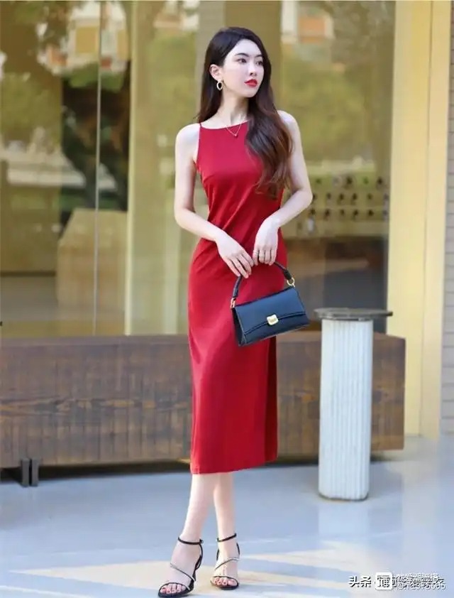(典例二)背厚身材:线条简约的直线感吊带裙
