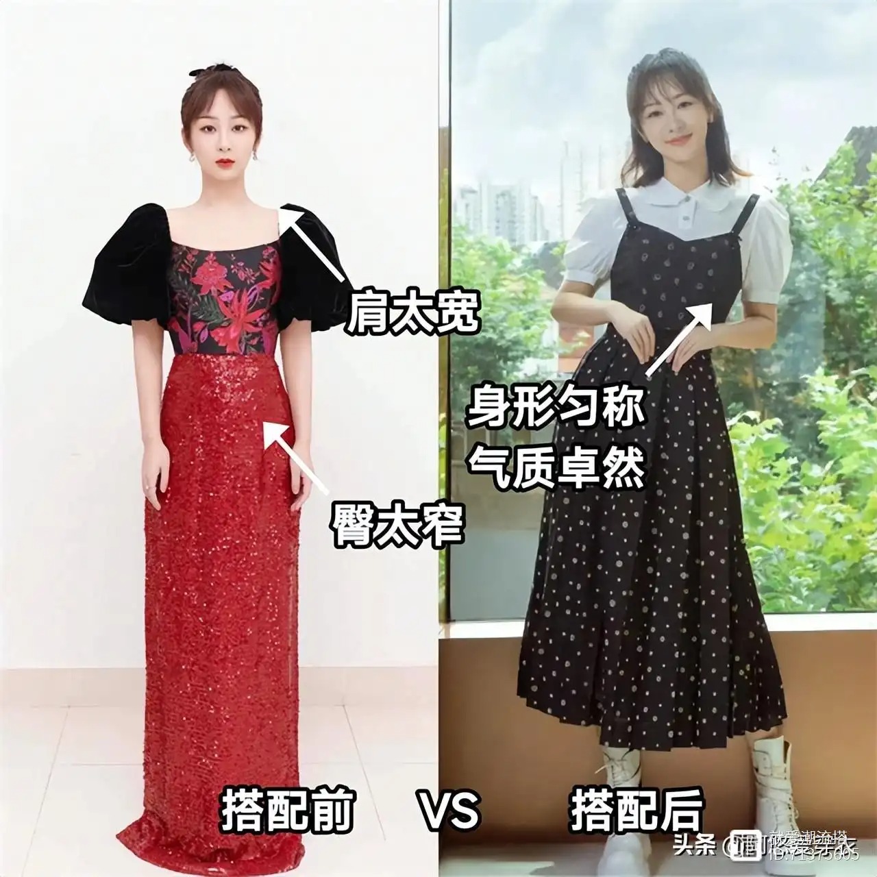 就拿杨紫来说,她如果搭配不好,也会出现肩太宽臀太窄的缺陷。所以说呀,十分的身材,六分靠基础,剩下四分就全看你的搭配咯~