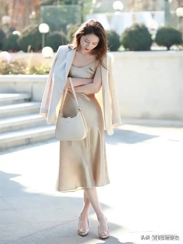这样的好身材,一定要多穿真丝等柔软质地的服装大胆勾勒出曲线美。局部修身和收腰设计也必不可少。