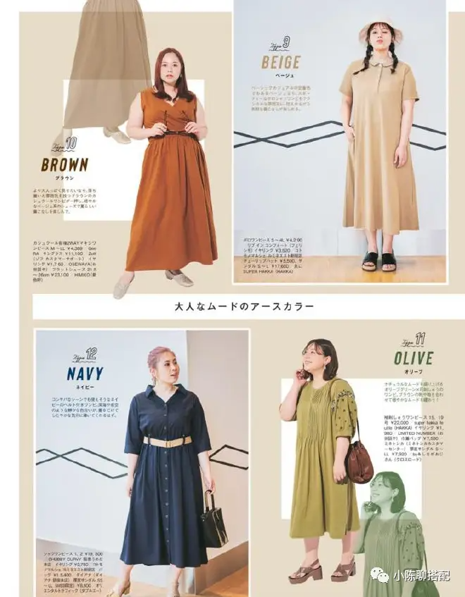 要是不知道怎么配色,纯色连衣裙就是夏季最省心的选择了,注意不要选择饱和度过高的颜色,那样也会让我们看起来扎眼,一般来说米色、豆绿色、浅棕色这些颜色都是比较安全的颜色。▼