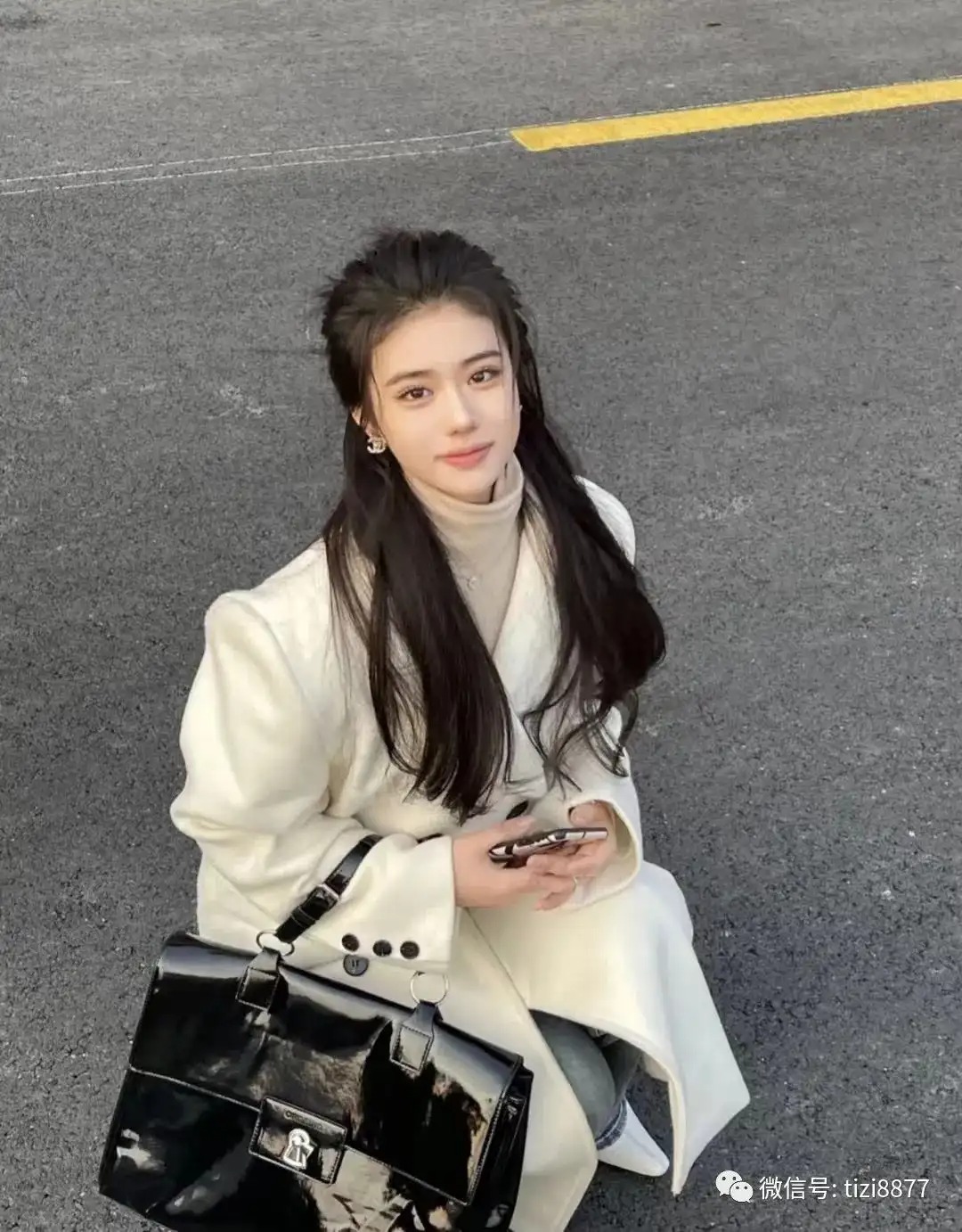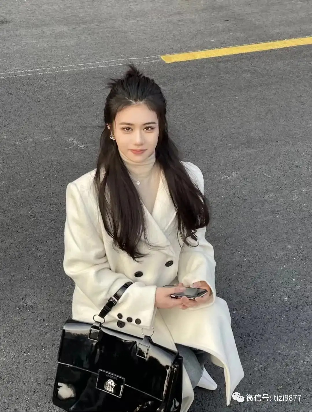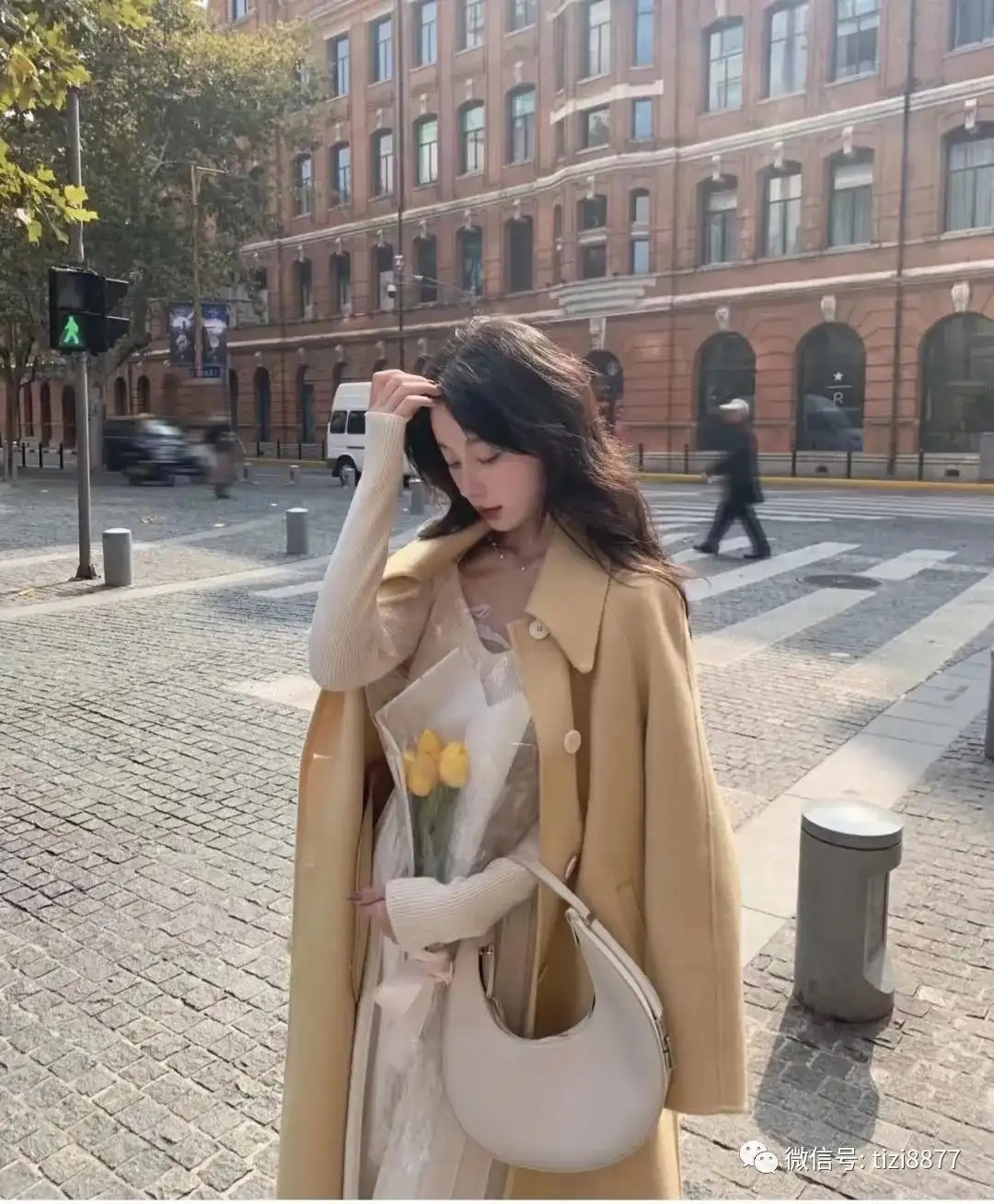 好看的黄色呢大衣,搭配白色针织连衣裙又奶又仙的。这条连衣裙很有设计感,锁骨的地方是珍珠项链,区别于市面上普通针织连衣裙,精致感一下子就到位~~