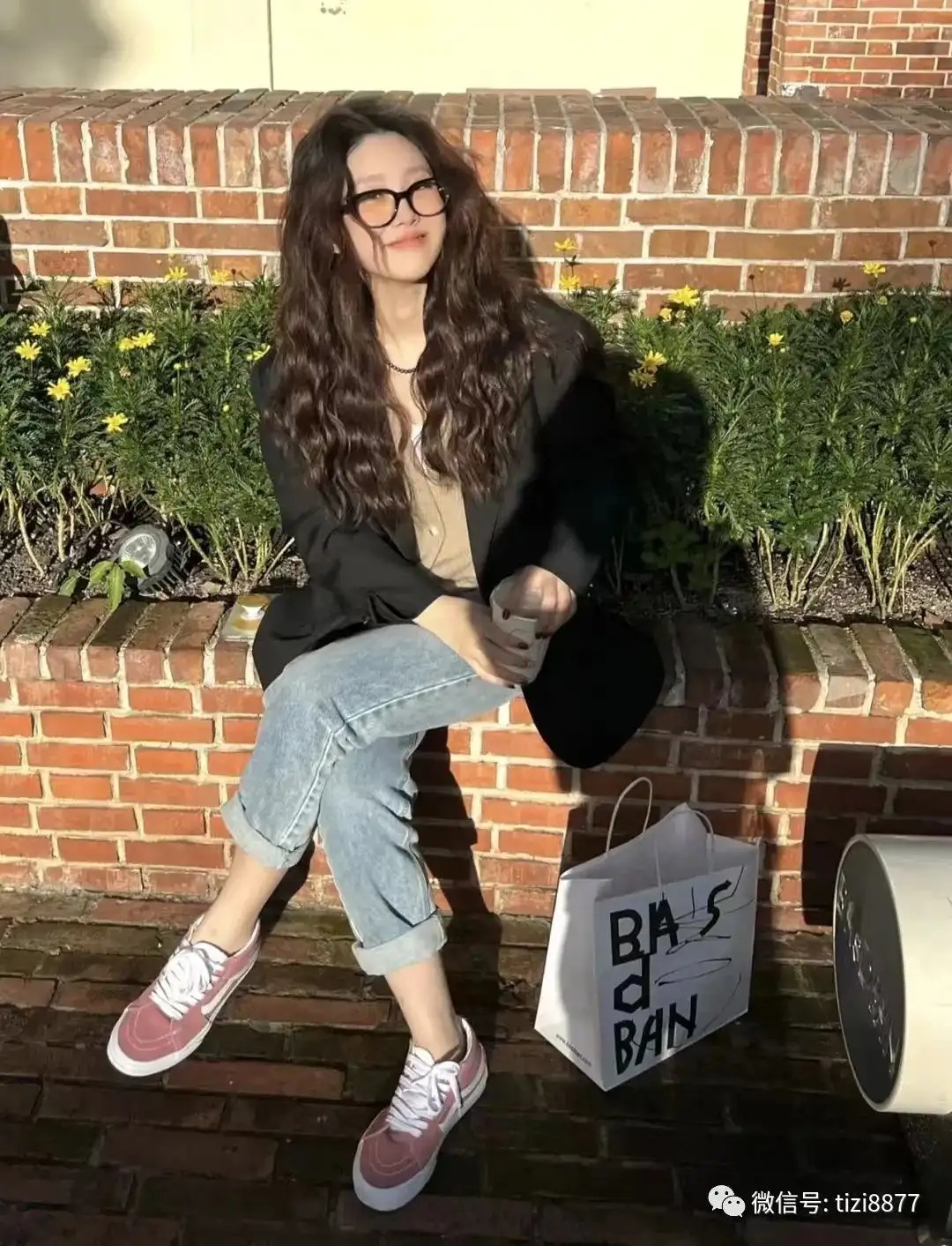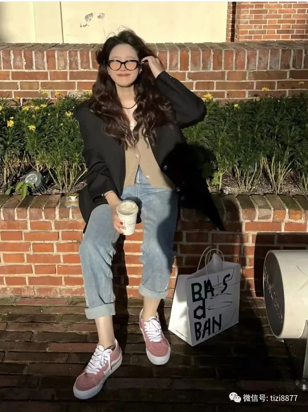 穿搭信息:上衣:英子oni;裤子:zne;鞋:Vans豆沙粉;眼镜:fakeme