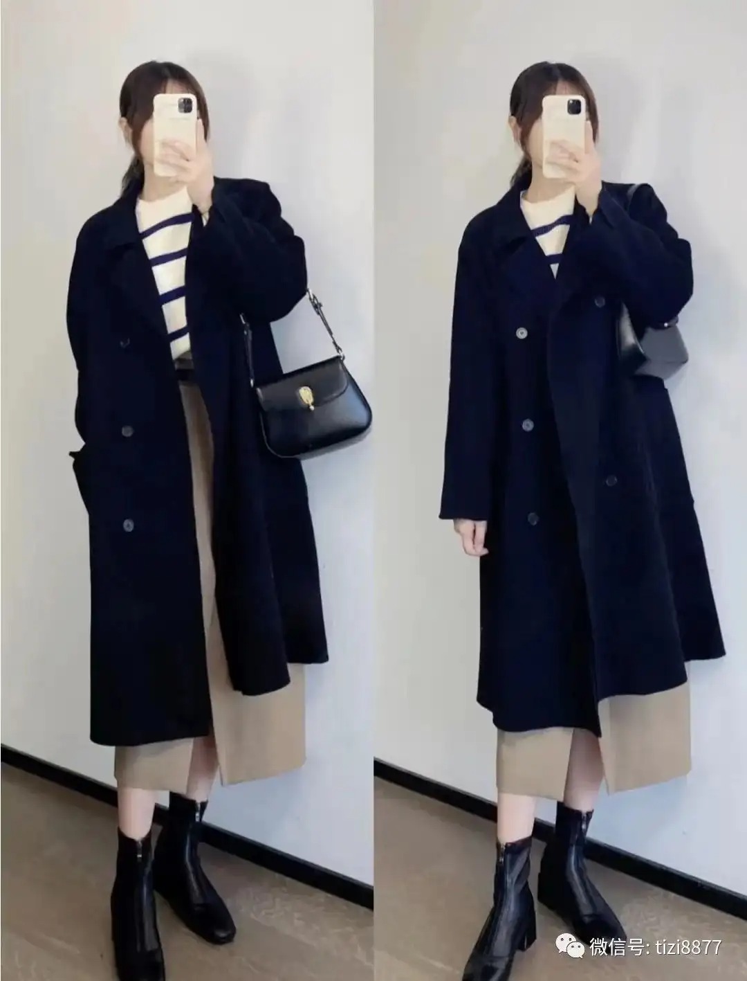 卡其色和黑色搭配就是很沉稳,有种浓郁的秋冬韩范,这样穿去上班心情都好起来了~~