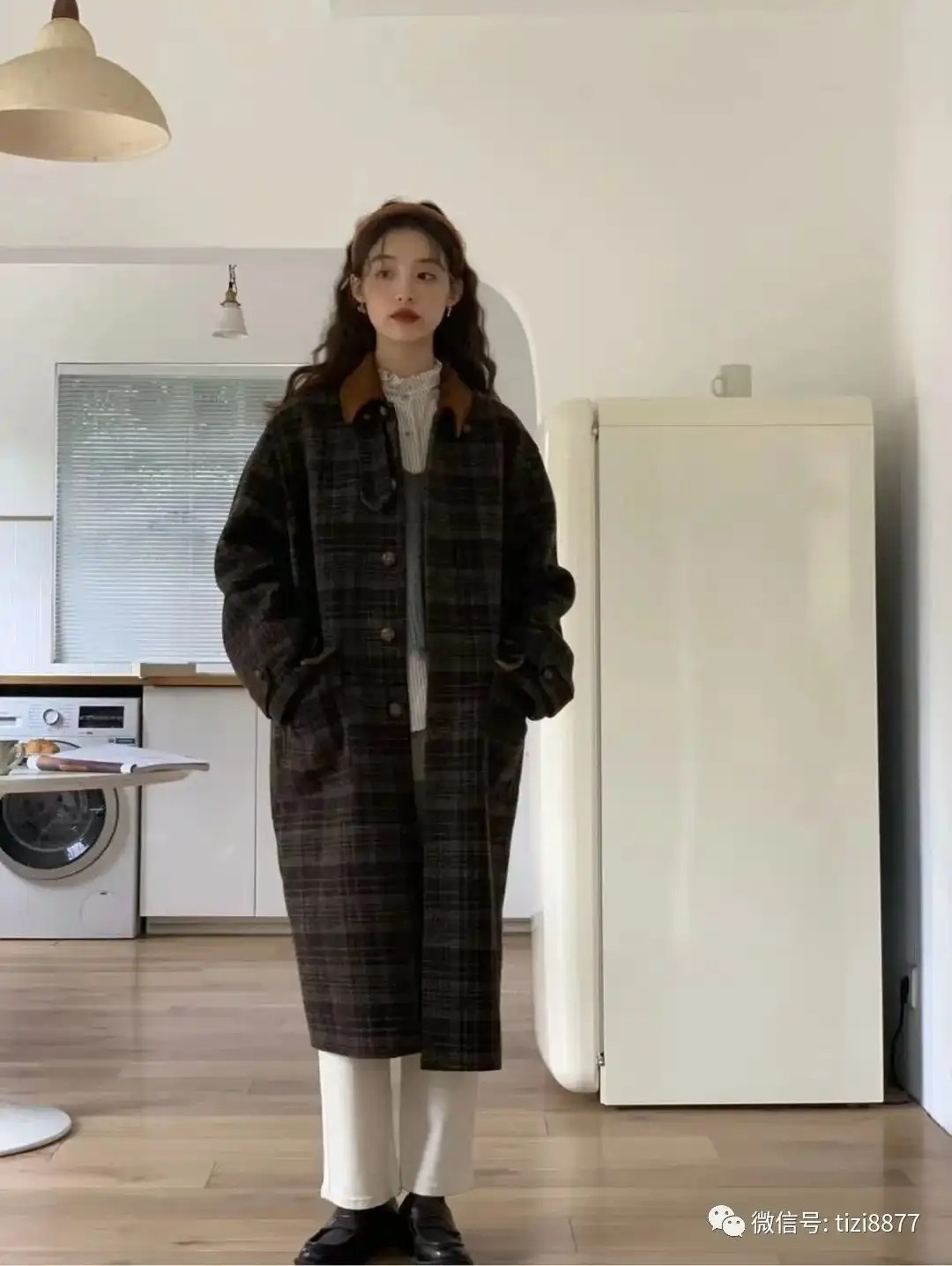好看的橄榄绿棕色混花格大衣有学院的乖巧+法式的优雅,领子立起来穿真的又酷又可爱,果实扣很有质感,给这件外套加分不少,是可以穿很多年的经典款~~