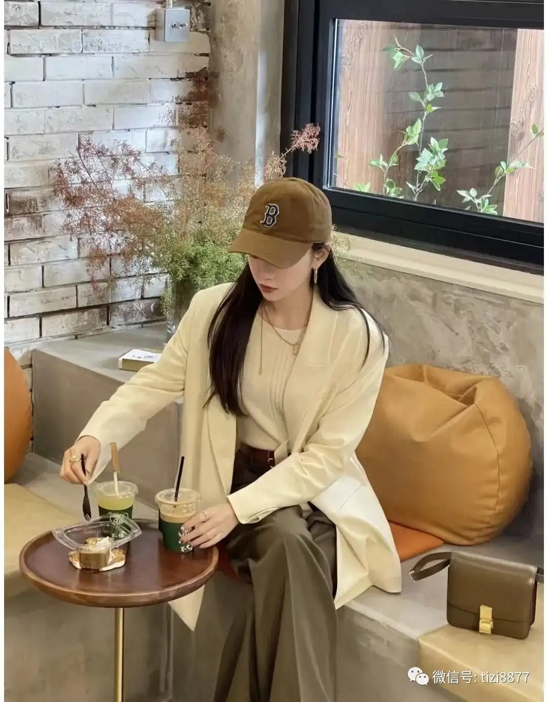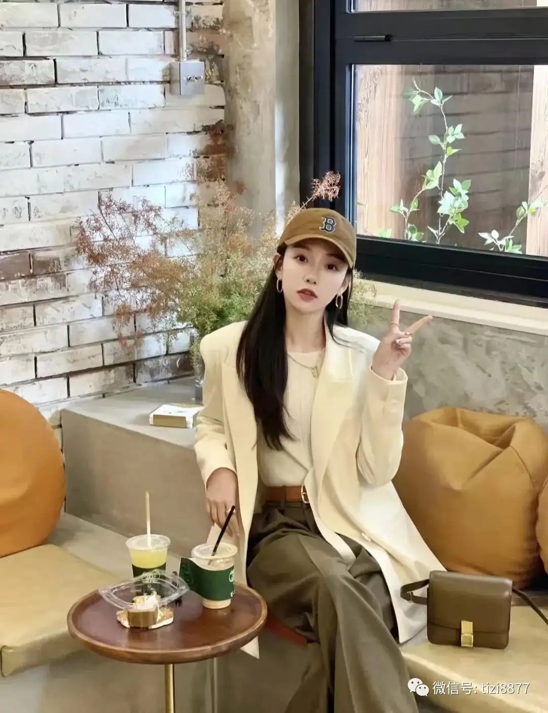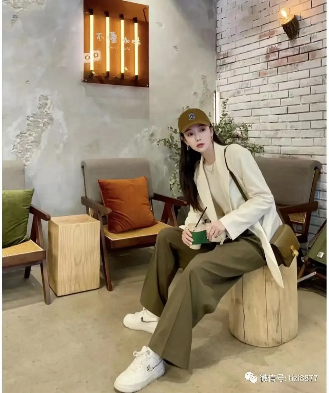 棒球帽+西装怎么穿都穿不够。万能穿搭公式:西装一定要够大,咸菜色的阔腿裤颜色秋冬且高级,内搭的白色针织衫柔软舒适很保暖~~