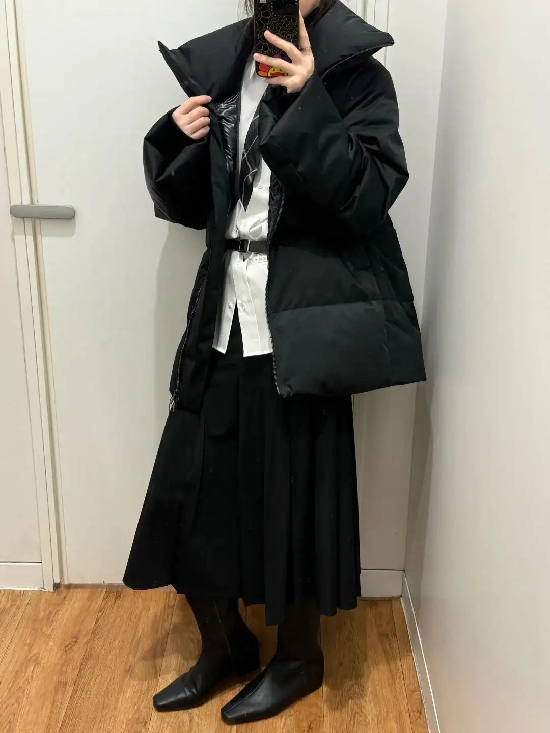 像博主一样在外叠搭羽绒服也完全不影响观感,简洁又有辨识度,在女人味呈现和氛围感展示上,都是不拉胯的。