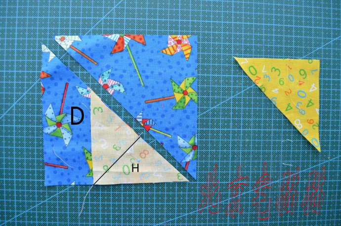 取另一片没有拼接H的D布片,背面对背面,对齐。