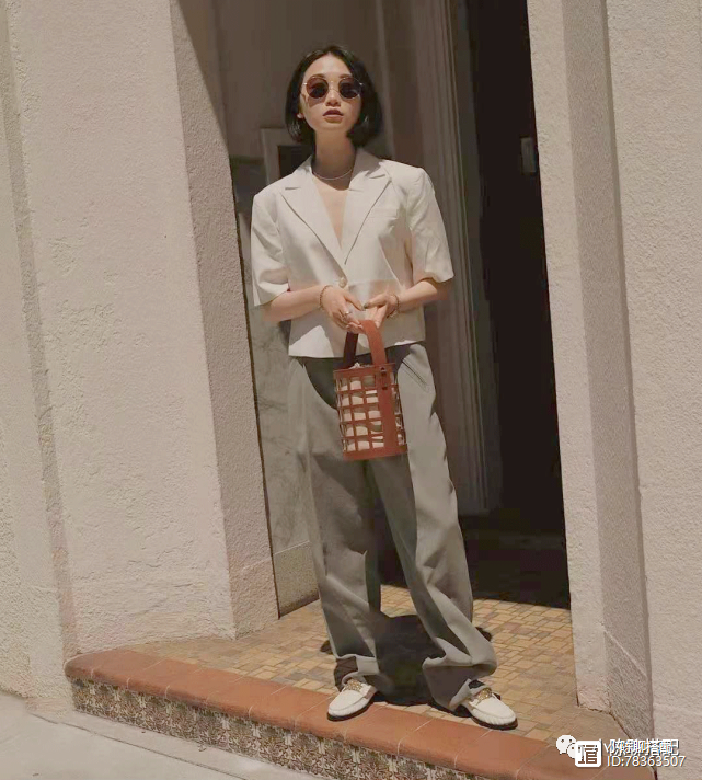 稍通勤风的西装和阔腿裤,索性直接选择短款的西装,将腰线落落大方地展现出来。