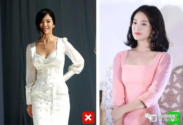 韩星宋慧乔也属于丰满型的小个子女孩,小陈找到了她曾穿U领衣服对比图,显然粉色U领是要优越于白U领口,因为粉色领口的裁剪和设计感恰到好处,而白色U领口稍低,走光风险明显较大。