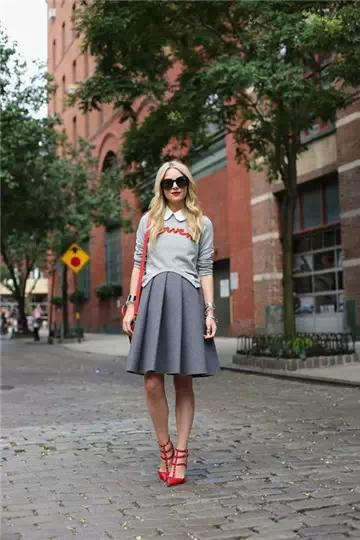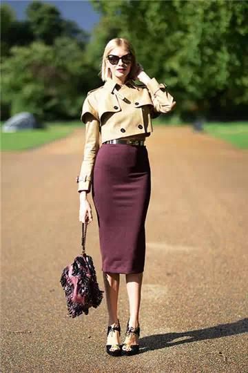 中长款裙子只要和短款的上衣穿在一起,就会立刻显得人挺拔气场足了。