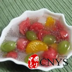 配料:苹果1个,梨1个,菠萝半个,杨梅10粒,荸荠l0粒,柠檬1个,白糖适量。