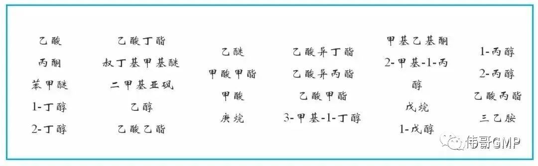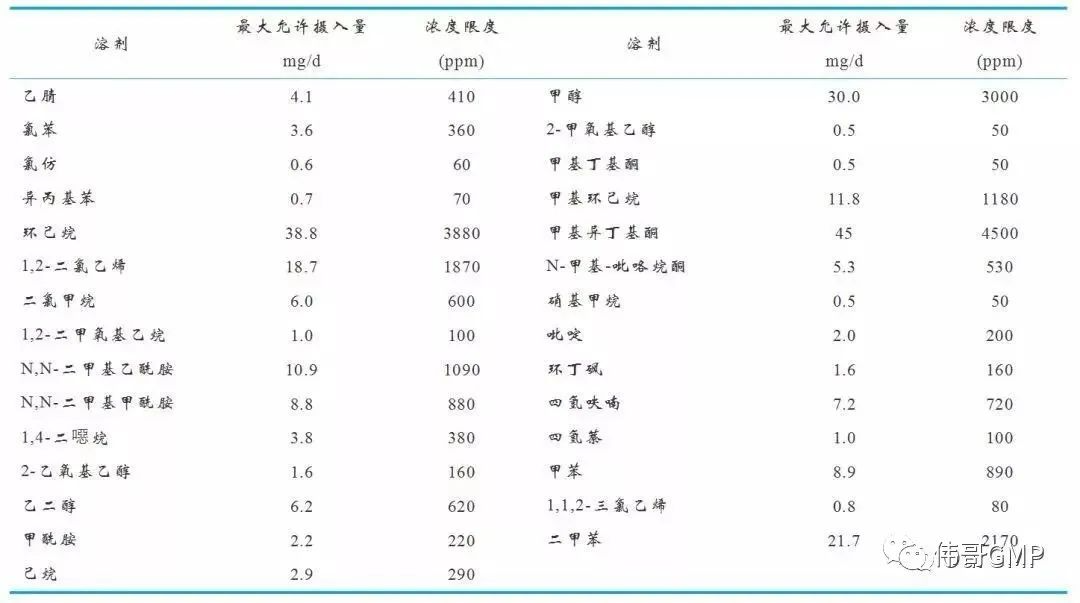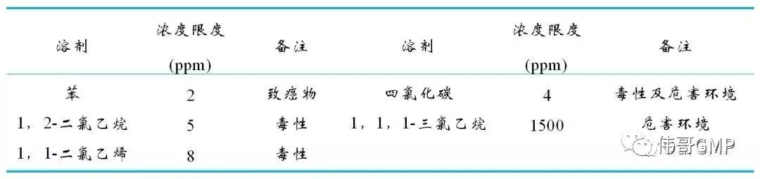 ICH《残留溶剂指南》规定,一类、二类溶剂仅在不可替代的情况下用于药品生产,但不能用作清洁剂。在无法避免时,三类溶剂可作为清洁剂,其在下批生产中允许的溶剂残留浓度不应超过初始溶剂浓度的0.5%。