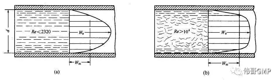 由此可知,在系统中,管径较大的部位或管径由小变大的部位Re值较小,相对容易发生层流,较难被清洁。